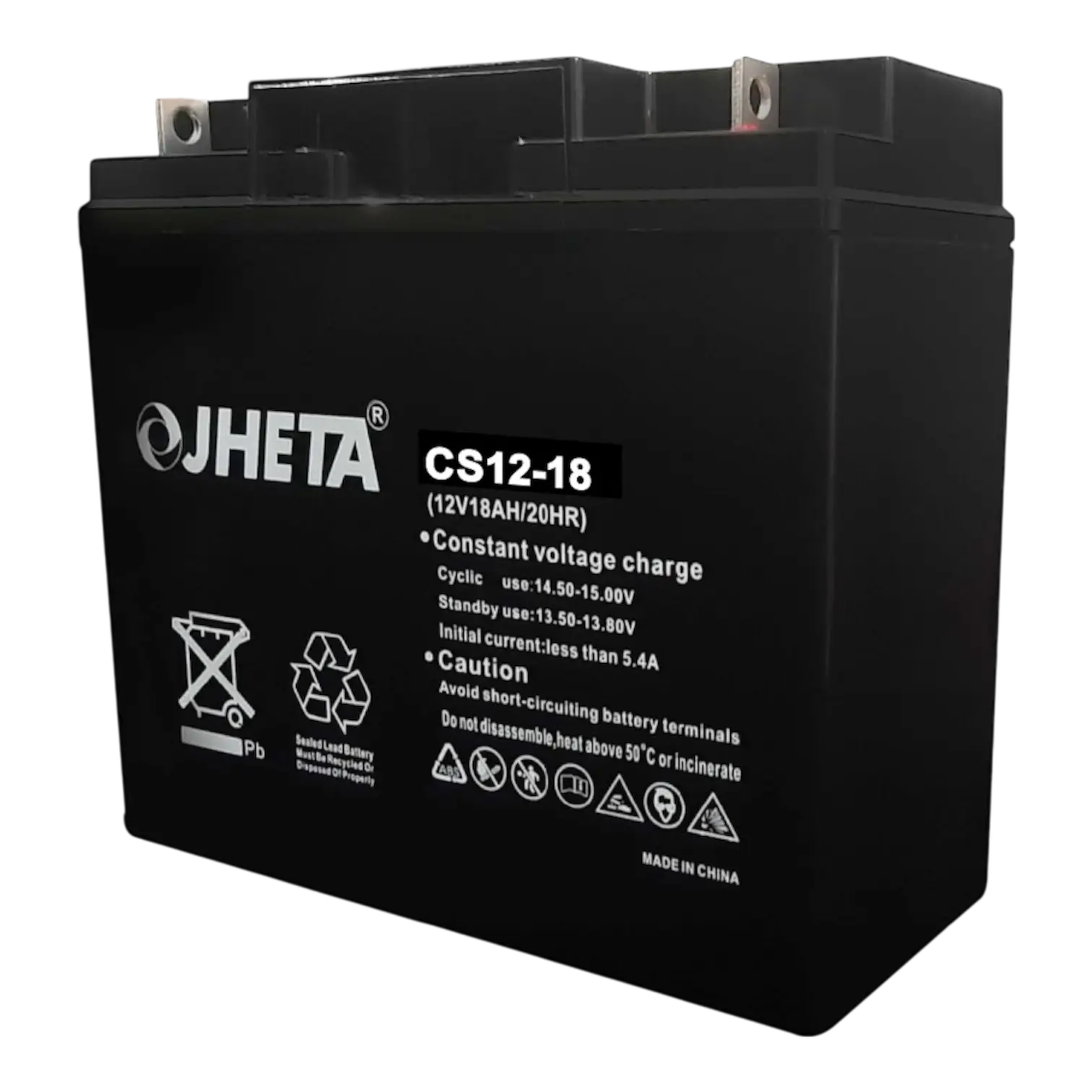 La Jheta CS12-18 es una batería sellada de 12V y 18Ah diseñada para aplicaciones de respaldo que requieren mayor autonomía y estabilidad operativa.